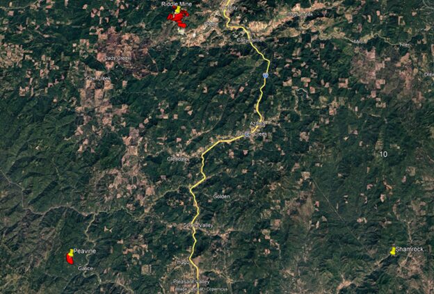 The Peavine Mountain Property (“Peavine” or the “Property”) is located in Josephine County, approximately 4 km west of the town of Galice, 3 km west of the Rogue River and less than 45 km south-southwest of the former Riddle Mine (the largest ever nickel mine in the United States). Access to the property is from Highway 5 west to the town of Merlin via Merlin Rd, then west on Galice Rd to Galice and then onto the property via local roads and trails (see Figure 1).